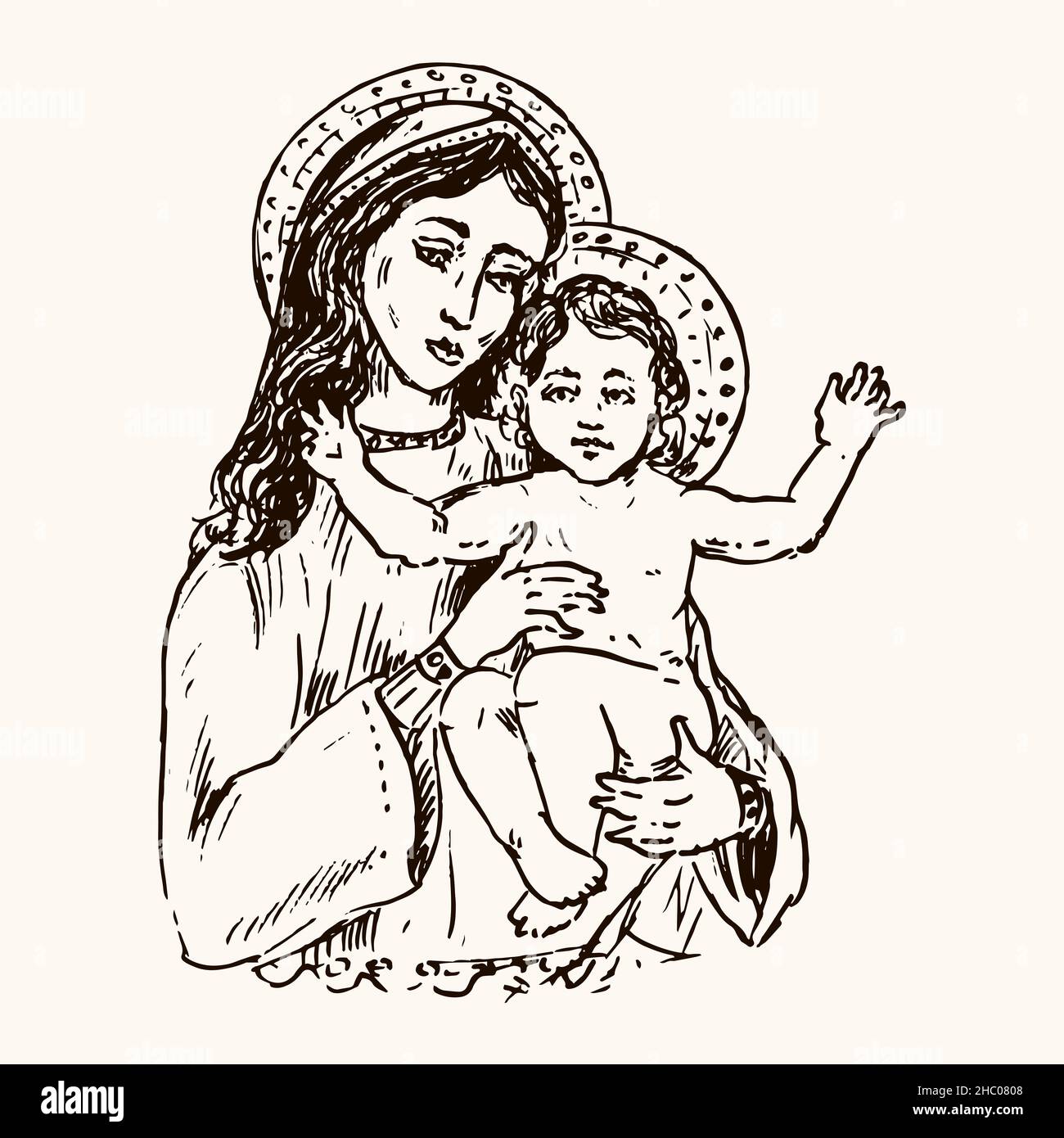 422 Drawing Of Sketch Woman Mother Holding Baby Illustrations Clip Art Istock